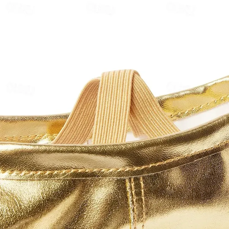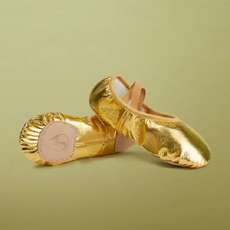 Girls’ Gold Ballet Flats with Elastic Straps – Soft Leather Dance Shoes for Ballet Classes and Performances 2025