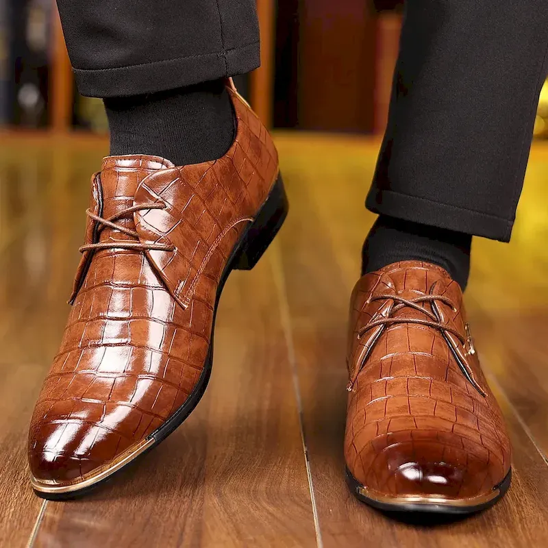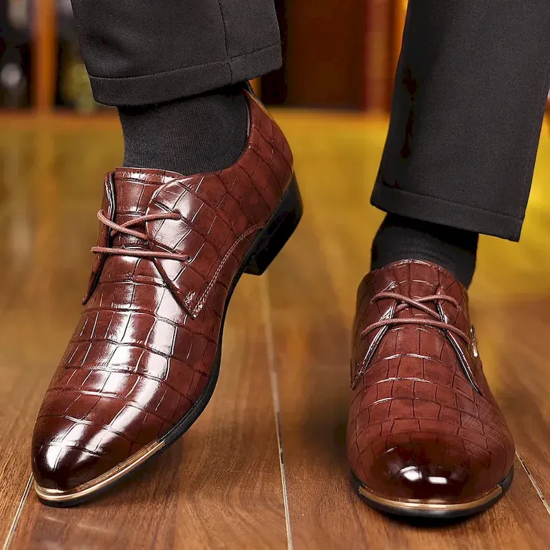 Men’s Brown Crocodile Pattern Faux Leather Oxford Shoes – Elegant Lace-Up Dress Shoes for Formal and Business Wear 2025