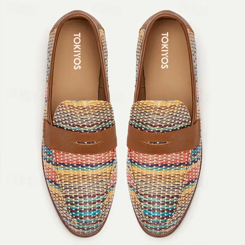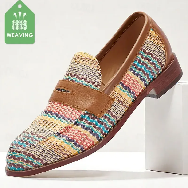 Men’s Multicolor Woven Leather Loafers: Ideal for Business Casual and Social Gatherings 2025