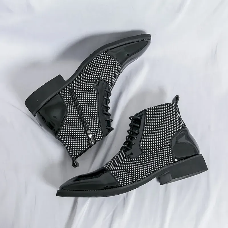 Men’s Patent Faux Leather and Lace-Up Ankle Boots – Stylish Formal Dress Shoes for Parties and Events 2025