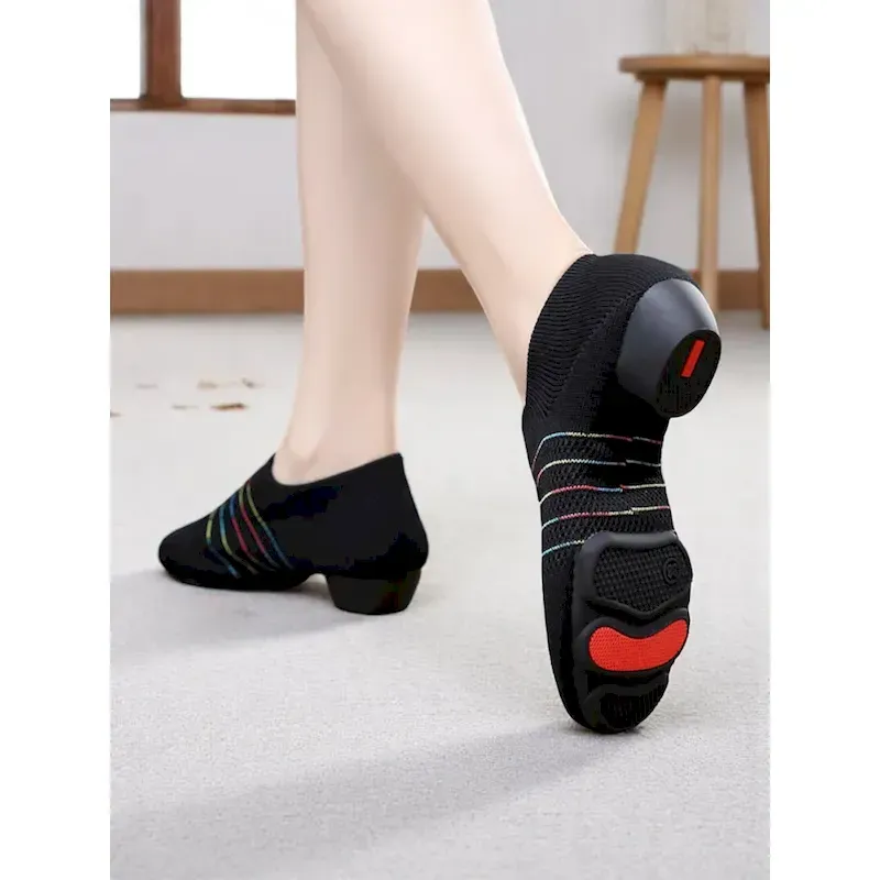 Women’s Black Mesh Dance Shoes with Kitten Heel and Colorful Stripes – Elegant Adult Dance Shoes for Ballroom and Latin Dance 2025