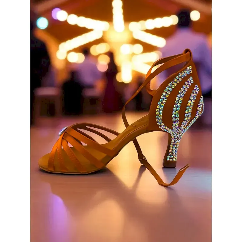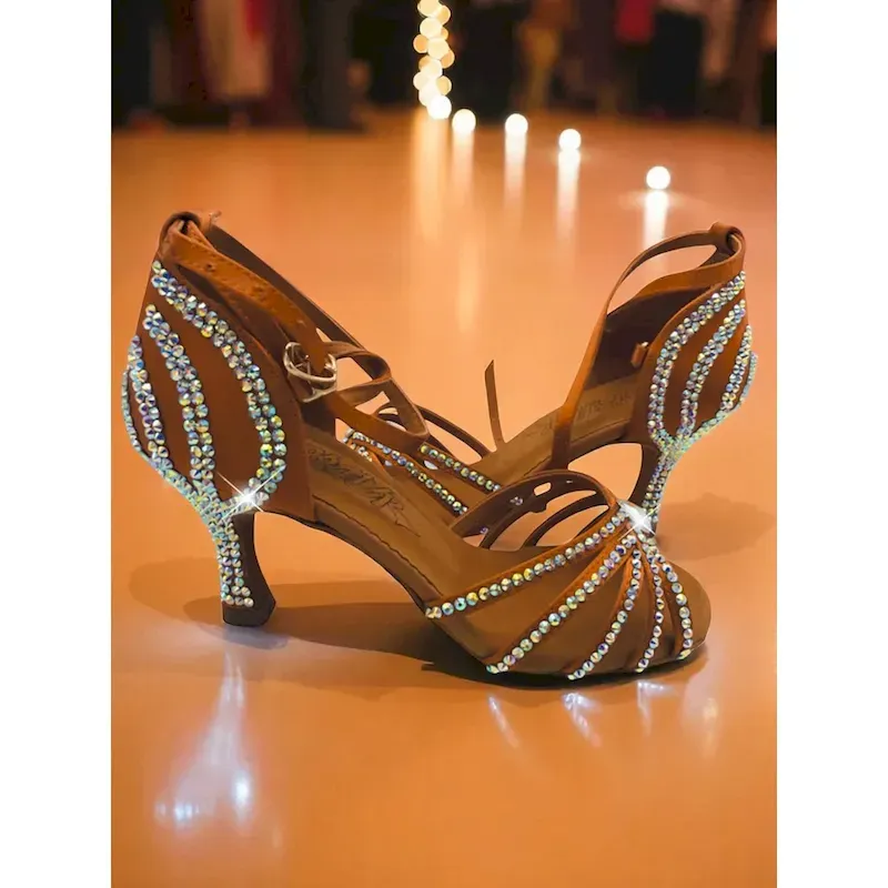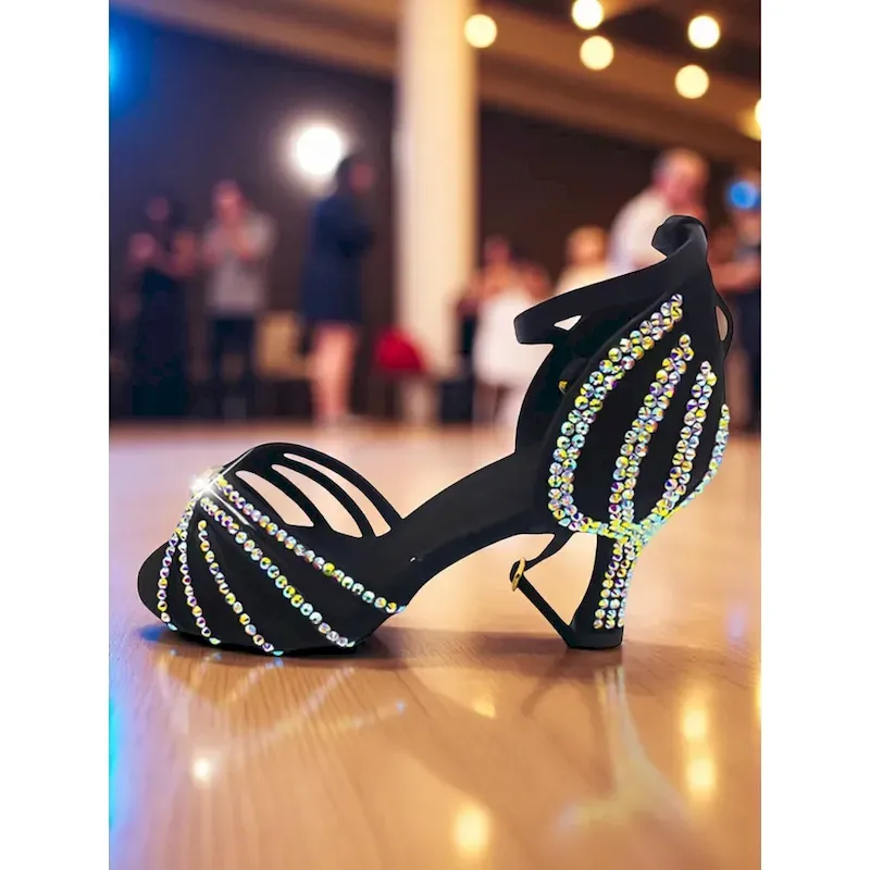 Women’s Black Rhinestone Strappy Latin Dance Sandals – Elegant Gatsby Style Open Toe Heels for Ballroom, Gatsby Parties and Latin Dance Performances 2
