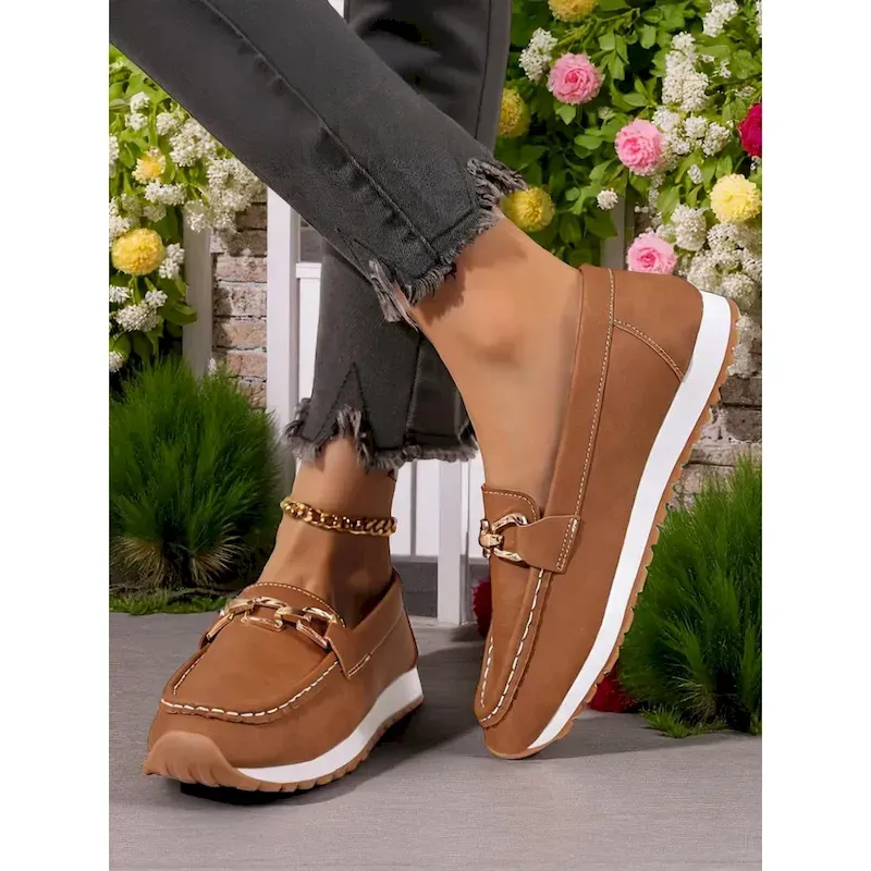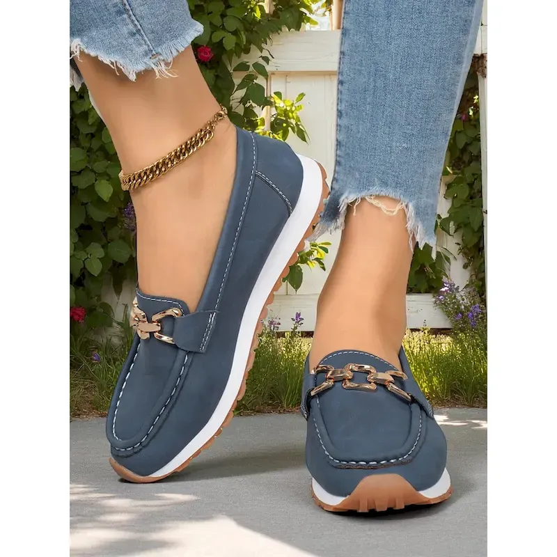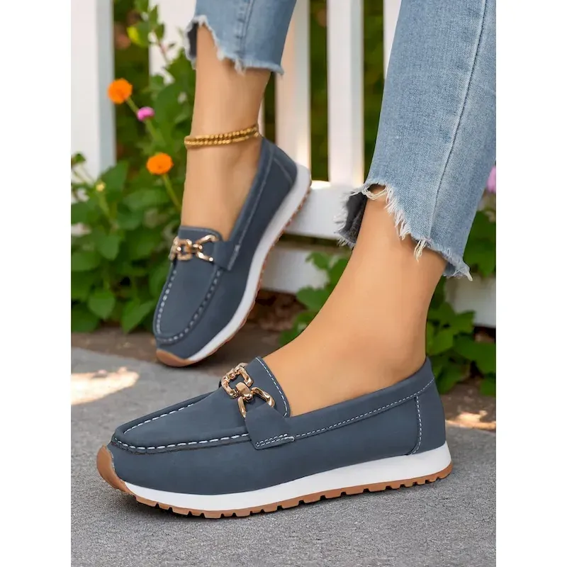 Women’s Loafers with Gold Buckle – Casual Slip-On Flat Shoes for Garden Walks, Brunch & Everyday Errands 2025