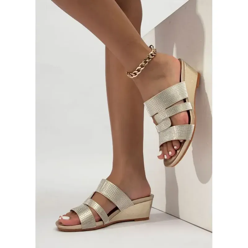 Women’s Metallic Slide Sandals with Textured Straps, Open-Toe Flat Shoes for Casual Summer Outings and Beach Wear 2025