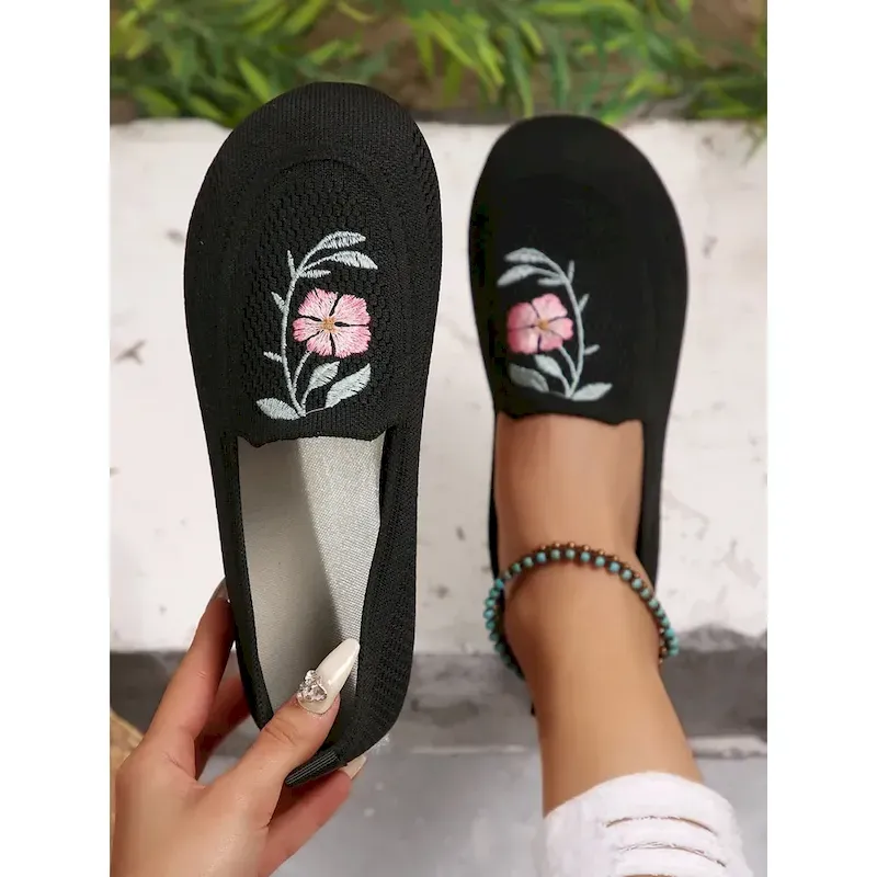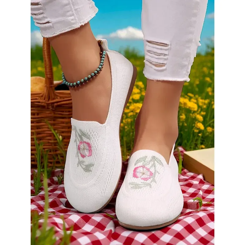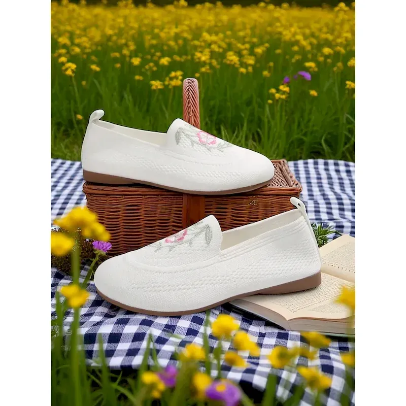 Women’s Wide Toe Barefoot Shoes – Floral Embroidered Flyknit Flats for Picnics, Garden Strolls and Summer Getaways 2025