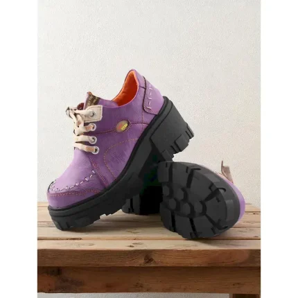 Women’s Green Genuine Leather Chunky Sole Lace-Up Casual Shoes – Retro Leather Oxford Style Shoes for Autumn Fashion and Outdoor Walking 2025